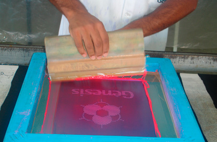 Aplicar o Plastisol Gel Pink Flúor com 1 repique e pré- curar.