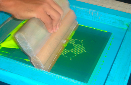 Aplicar o Plastisol Gel Amarelo Flúor com 1 repique e pré-curar.