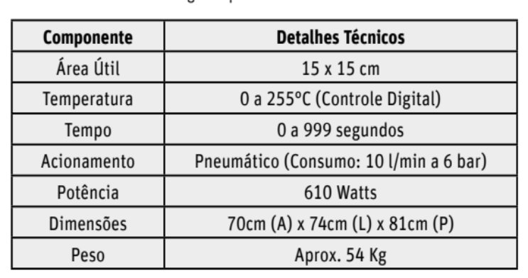 O sistema de prensagem pneumática, aliado ao controle digital de temperatura e tempo, permite que o operador mantenha uma padronização rigorosa, resultando em uma termo transferência de alta qualidade, essencial para marcas que não abrem mão do acabamento impecável.